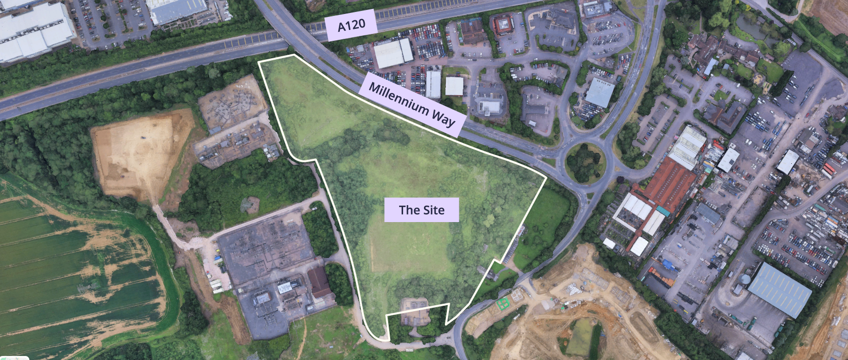 The proposed development is located next to Braintree’s established out-of-town retail area, close to the A120 and existing commercial uses, sitting between Braintree and Cressing along Millennium Way.
